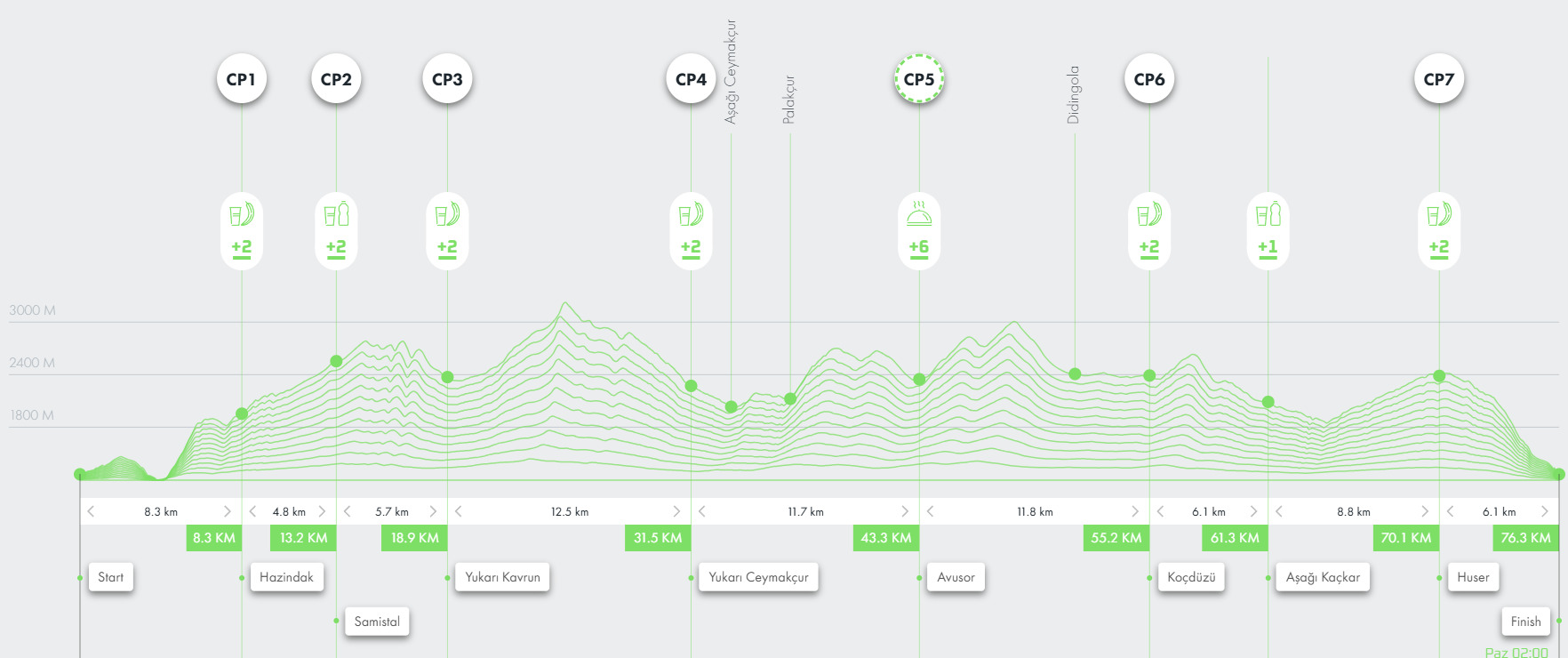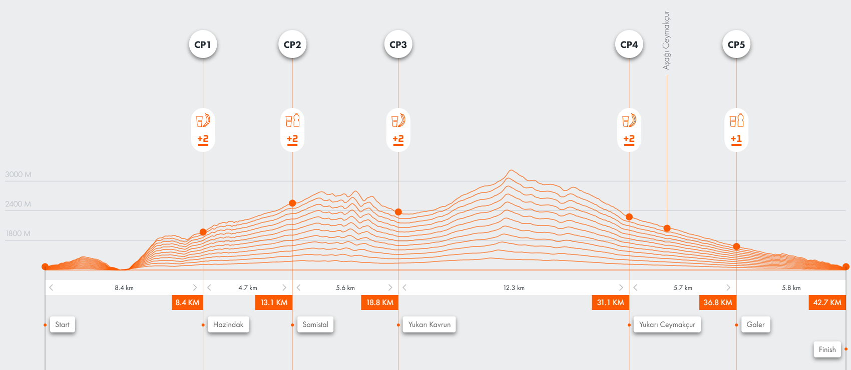 Following the same path as route 43 until the pass, this route then heads north towards Aşağı Kavron Plateau.